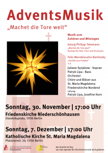 Donnerstags (nicht in den Schulferien) sind Proben für den Kinderchor in St. Maria Magdalena: 16 Uhr für die „Spatzen“ und 16:30 Uhr für die „Schwalben“, umrahmt von der Gruppenstunde.